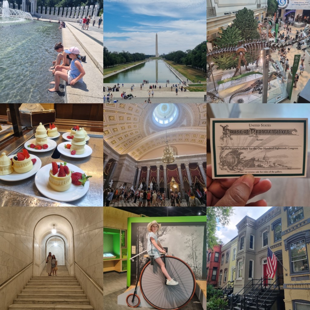 Am zweiten Tag hatten wir Karten, um das Capitol zu besichtigen. Wir hatten Glück und der Kongress war noch nicht in der Sommerpause, so konnten wir bei einer Sitzung zuschauen. Wir haben alle ganz schön gestaunt, als eine Abgeordnete am Ende ihrer Rede ihrer Schwester grüßte und ihr zum Geburtstag gratulierte. Da wir eine Woche zuvor ja erst in Ottawa waren und dort ebenfalls das Parlament besichtigt hatten, war es interessant, beides im Vergleich zu sehen und die Kinder haben viele Fragen über die Unterschiede der politischen Systeme in Deutschland, Kanada und den USA gestellt.
